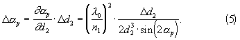 Величина изменения резонансного угла падения р зависит от величины изменения зазора d2 при прогибе мембраны и определяется выражением