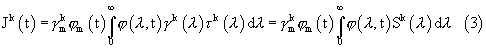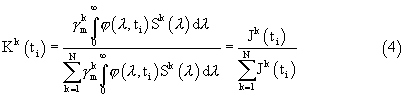 Значение Jk по формуле (3) зависит, в частности, от максимального значения спектральной плотности излучения объекта m(t) и от относительной спектральной плотности излучения ( ,t), каждая из которых в свою очередь зависит от времени.