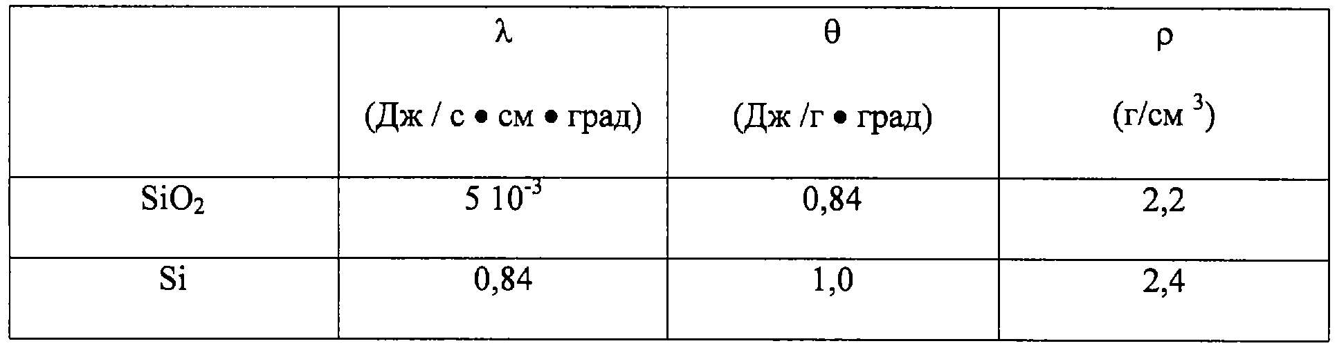 Здесь L1,2 – соответственно толщины слоев кремния и двуокиси кремния фиг.2, а 1,2 – величины температуропроводности соответствующих слоев, определяемые формулой
