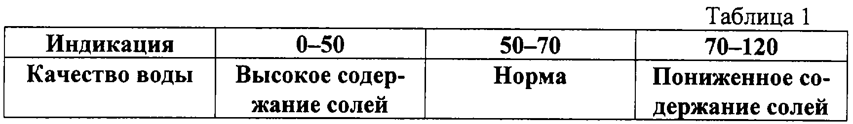(57) Реферат: Изобретение относится к области санитарной гигиены и промышленной экологии и может быть использовано для определения концентрации растворенных в воде солей. Устройство для измерения качества воды содержит расположенные в корпусе генератор переменного сигнала с подключенным к нему датчиком в виде двух электродов, каждый из которых одним участком обращен внутрь корпуса, а другим участком выходит наружу, блок индикации, источник питания, термистор, соединенный с генератором, блоки памяти и сравнения измеряемых сигналов, включенные между генератором и блоком индикации, блок памяти имеет корректировку нуля, один из электродов выполнен кольцеобразным, а второй в виде сплошного цилиндра и размещен внутри первого с кольцевым зазором между ними, зазор заполнен диэлектрическим материалом, генератор выполнен в виде автодинного устройства. Достигается повышение точности и чувствительности измерений. 5 ил., 2 табл. Изобретение относится к области санитарной гигиены и промышленной экологии и может быть использовано для определения концентрации растворенных в воде солей. Известен индикатор качества очистки воды, содержащий камеры очищенной и исходной воды, соединенные с атмосферой и разделенные полупроницаемой мембраной. Камеры при помощи вентилей соединены с системой подачи очищенной и исходной воды, соответственно. Камера очищенной воды имеет измерительный капилляр диаметром 1-3 мм, в нижней части которого выполнен расширитель. При этом объем камеры исходной воды превышает суммарный объем камеры очищенной воды и измерительного капилляра с расширителем в 3-10 раз, суммарный объем измерительного капилляра с расширителем превышает объем камеры очищенной воды в 1-5 раз, объем расширителя в 20-25 раз превышает объем измерительного капилляра (см. патент РФ №2073556, МКИ B 01 D 65/00). Недостатком устройства является недостаточная точность проводимых измерений и узкий диапазон контролируемых значений. Известно устройство определения количественных характеристик вод типа конденсата, которое может быть использовано на тепловых электрических станциях. Сущность изобретения заключается в следующем: проводят одновременные измерения рН и электропроводности пробы воды, затем проводят измерения рН и электропроводности пробы воды, прошедшей Н-катионитовую колонку, все измерения проводят с учетом температуры пробы воды, а определение показателей качества воды осуществляют путем обработки измерений на ЭВМ с использованием системы уравнений, характеризующей ионные равновесия в исходной пробе воды и в Н-фильтрате. Однако устройство имеет недостаточную точность проводимых измерений и не обладает мобильностью по отношению к различным источникам пробы воды. Наиболее близким по технической сущности к предлагаемому решению является электронная система контроля работы автономного обратноосмотического устройства для очистки жидкости, содержащая корпус, образованный основанием и крышкой, и две пары электродов. В основании выполнены два канала для движения жидкости соответственно до и после обработки. Каждый электрод первой пары имеет два участка, один из которых вставлен в первый канал, а другой выведен внутрь корпуса. Находящиеся в первом канале участки электродов установлены на расстоянии один от другого так, что один из н
