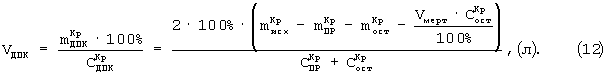 Так как масса красителя, ушедшая в двенадцатиперстную кишку, является разностью между исходной массой красителя, массой красителя в эвакуированном растворе уравненной концентрации (mКрПР) и массой его в остаточном объеме и в объеме мертвого пространства (Vмерт·СКрОСТ), то справедливо уравнение: