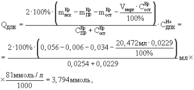 Qост – количество Н+-ионов в остаточном объеме, ммоль;