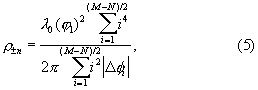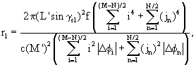 i= i– -i и n= n– -n – разность разностей фаз i-x и n-х симметричных относительно центрального приемных каналов соответственно;