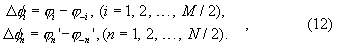 Затем производится формирование сигналов, пропорциональных разности фаз сигналов в симметричных каналах