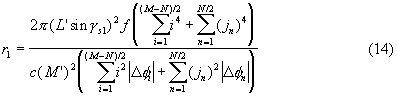 После выполнения операции 13 достигается потенциальная точность оценки углового положения и дальности до источника излучения симметричной разреженной антенной решеткой [4, 6]