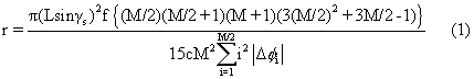 Формула изобретения Способ оценки текущих координат источника радиоизлучения, заключающийся в приеме излученного целью радиосигнала каждым из М+1 элементов эквидистантной линейной антенной решетки (АР), расположенных друг относительно друга на расстоянии половины длины волны 0 источника излучения, усилении его в каждом приемном канале, измерении частоты f принятого сигнала, формировании с помощью фазометров сигналов, пропорциональных разности фаз сигналов в центральном и каждом из приемных каналов, определении направления прихода сигнала s1, получении сигналов, пропорциональных разности разностей фаз симметричных относительно центрального приемных каналов, дополнительном усилении этих сигналов в квадрат порядкового номера симметричных каналов раз, суммировании полученных сигналов и расчете по формуле дальности до источника излучения, отличающийся тем, что осуществляют попарный вынос с каждого края АР N/2 антенных элементов, где N много меньше М, и приблизительно равномерно их располагают на продольной оси АР в пределах зоны Френеля i-x невынесенных элементов, где i=0, 1, … , (M-N)/2, определяют дальность и угловое положение вынесенных элементов, рассчитывают по измеренным координатам точки привязки вынесенных элементов к продольной оси АР и таким образом определяют их порядковые номера jn, осуществляют фазирование каналов n-х вынесенных антенных элементов, где n=0, 1, … , N/2, предварительно оценивают дальность r1 до источника излучения с учетом значений фазы принимаемого сигнала на вынесенных элементах по формуле