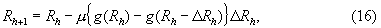 – база АР, образованной из (М+1) элементов, уточняют вектор координат Rh={rh,