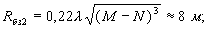 Полагаем операции выноса, определения координат, привязки и фазирования n-х элементов выполненными так, что их фазовые центры расположены равномерно в пределах зоны Френеля AP1 и симметрично относительно ее центрального элемента. В этом случае максимальная база L’ АР, состоящей из М+1 антенных элементов, составляет 250 м. Тогда потенциальный диапазон измеряемых дальностей составляет: