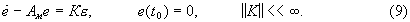 Дифференциальное уравнение (9) устойчивое с возмущением К , при ![]() 0 обеспечивает достижение цели адаптации: e 0.