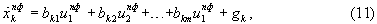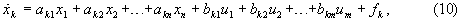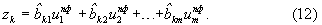 где индекс k указывает номер строки уравнения (1). Отклик (термин регрессионного анализа) является реакцией на все сигналы в правой части уравнения (10). Для сокращения числа оцениваемых параметров необходимо выделить из сигнала отклика составляющую, являющуюся реакцией только на сигналы управления.