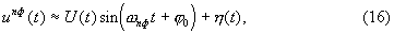 где U(t) – переменная во времени амплитуда сигнала, 0 – начальная фаза, (t) – среднее значение гармонического сигнала. Динамика сигнала полностью определяется динамикой управления unф(t- k) (см. выражение (15)). Сигнал также будет сигналом одной частоты nф, но сдвинутым на задержку k. относительно сигнала unф