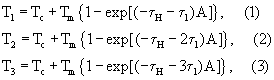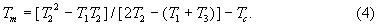 Разделим левую и правую части (1) на левую и правую части (2), а левую и правую части (2) на левую и правую части (3) соответственно и, решая систему уравнений относительно Тm, получим максимальную температуру перегрева