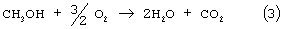 Таким образом, суммарная реакция переработки спирта в ЭУ (ЭХГ + топливный конвертор) ((1)+(2)) выглядит как реакция горения метанола: