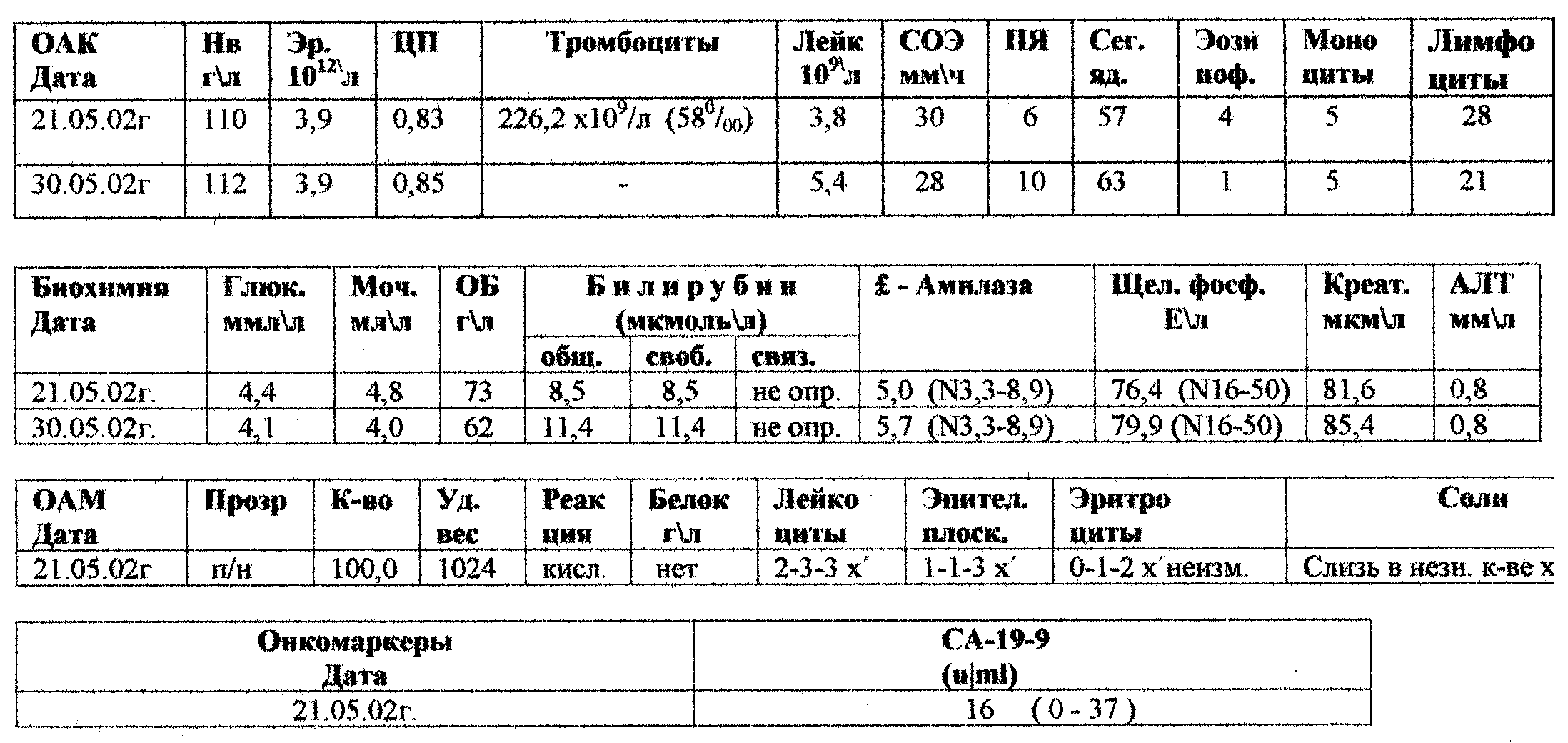 В таблице приведены анализы, полученные при обследовании.
