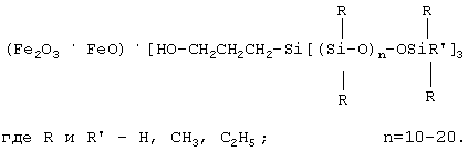 Преимущественно суспензию магнетита обрабатывают -аминопропилтриэтоксисиланом или аминоэтоксисилоксаном при массовом соотношении указанных соединений к магнетиту, равном 1:(50-150), при температуре 15-40 С.