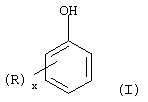 – соединения, соответствующие формуле I, в которой x равен 0, такие как фенол,