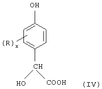 В следующем ниже изложении изобретения под выражением “возможно замещенные п-гидроксиминдальные соединения” подразумеваются ароматические соединения, содержащие по меньшей мере одну группу -СНОН-СООН в параположении к гидроксильной группе.