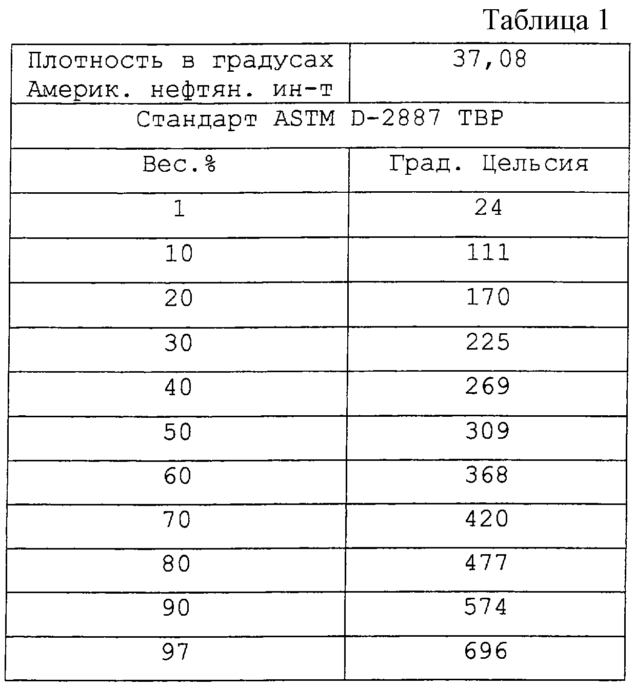 Применяемое в данном изобретении сырье – сырая нефть имеет следующие характеристики. Каждая из приводимых ниже характеристик сырья сырой нефти измеряется согласно стандарту ASTM D-2887: