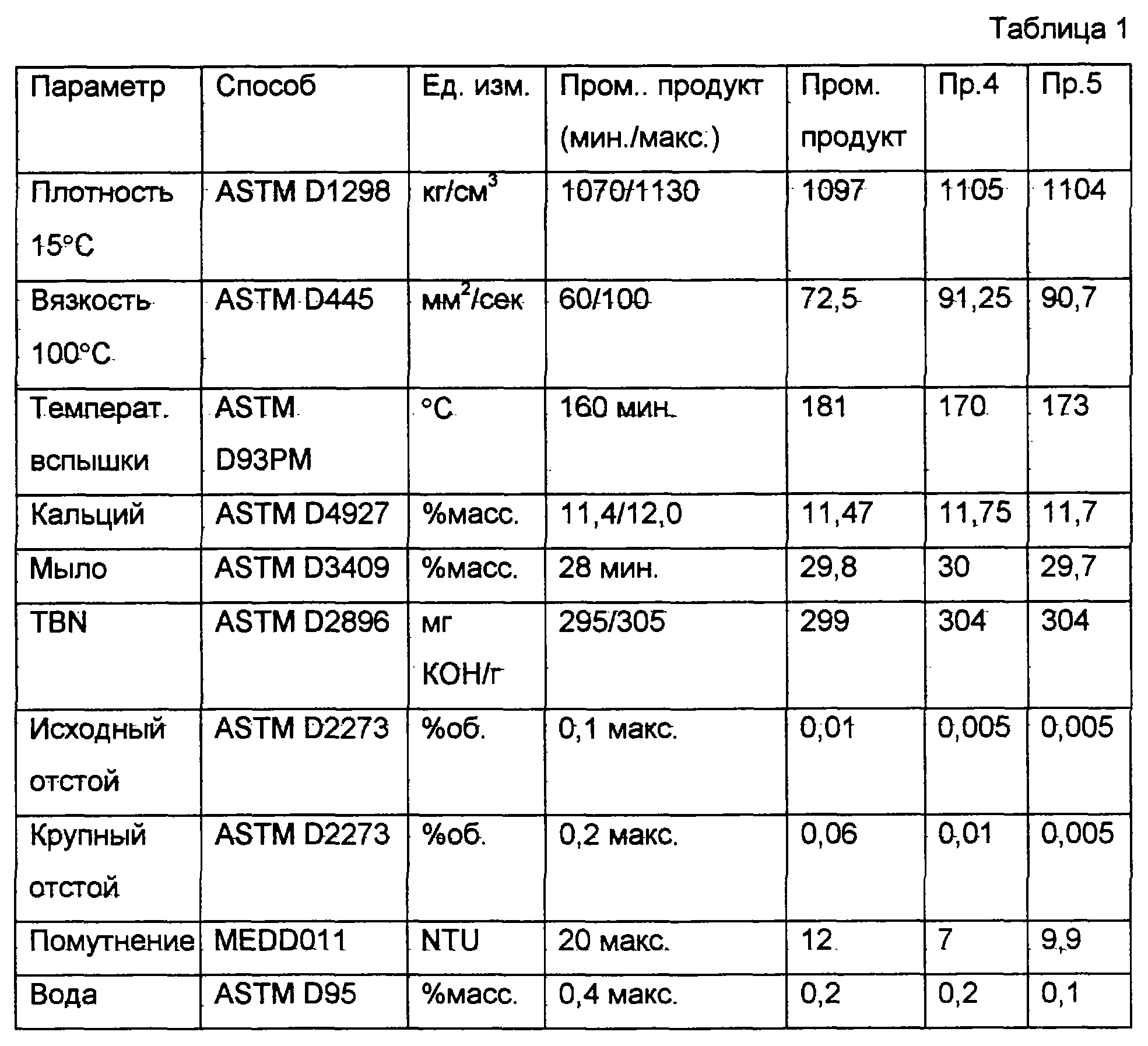 Сульфонат, извлеченный после центрифугирования, анализировали теми же способами, которые приняты для промышленного сульфоната. Результаты представлены в таблице 1.