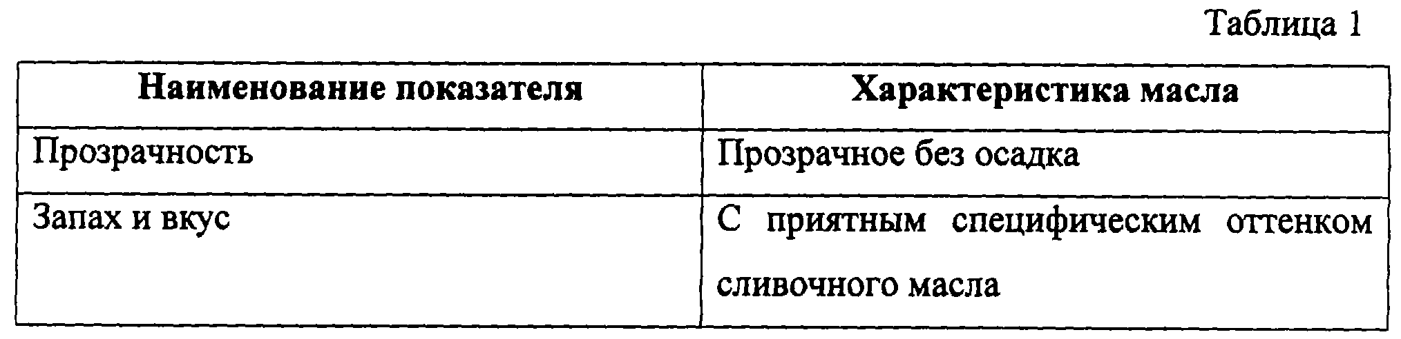 Таким образом, заявленное изобретение позволяет расширить ассортимент масел, увеличить их качество как по органолептическим показателям, так и по физико-химическим свойствам, снизив кислотное и перекисное числа, увеличить при этом сроки годности масла.