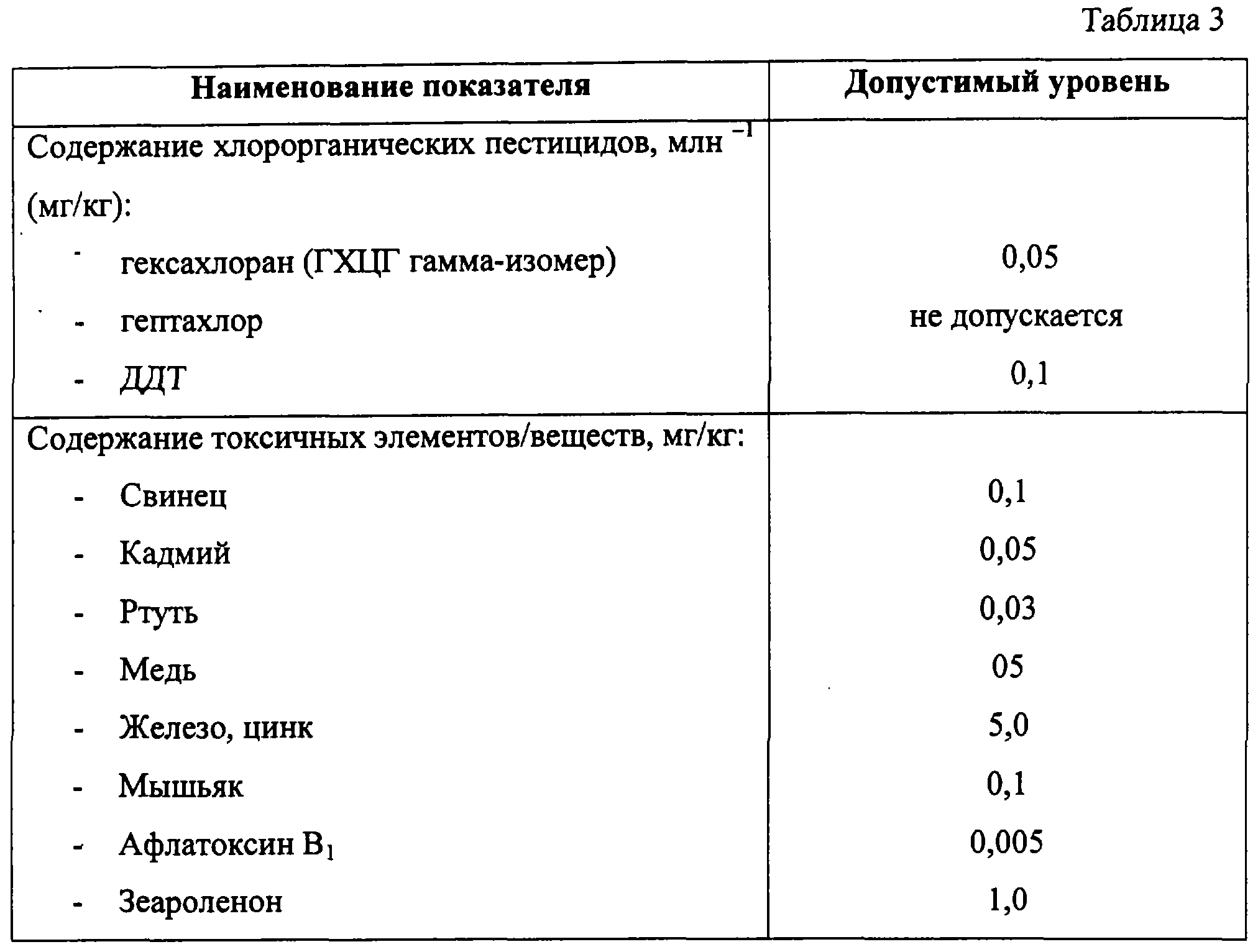 В заявленном масле содержание пестицидов, токсичных элементов и микотоксинов не превышают следующие показатели (см. табл. 3).