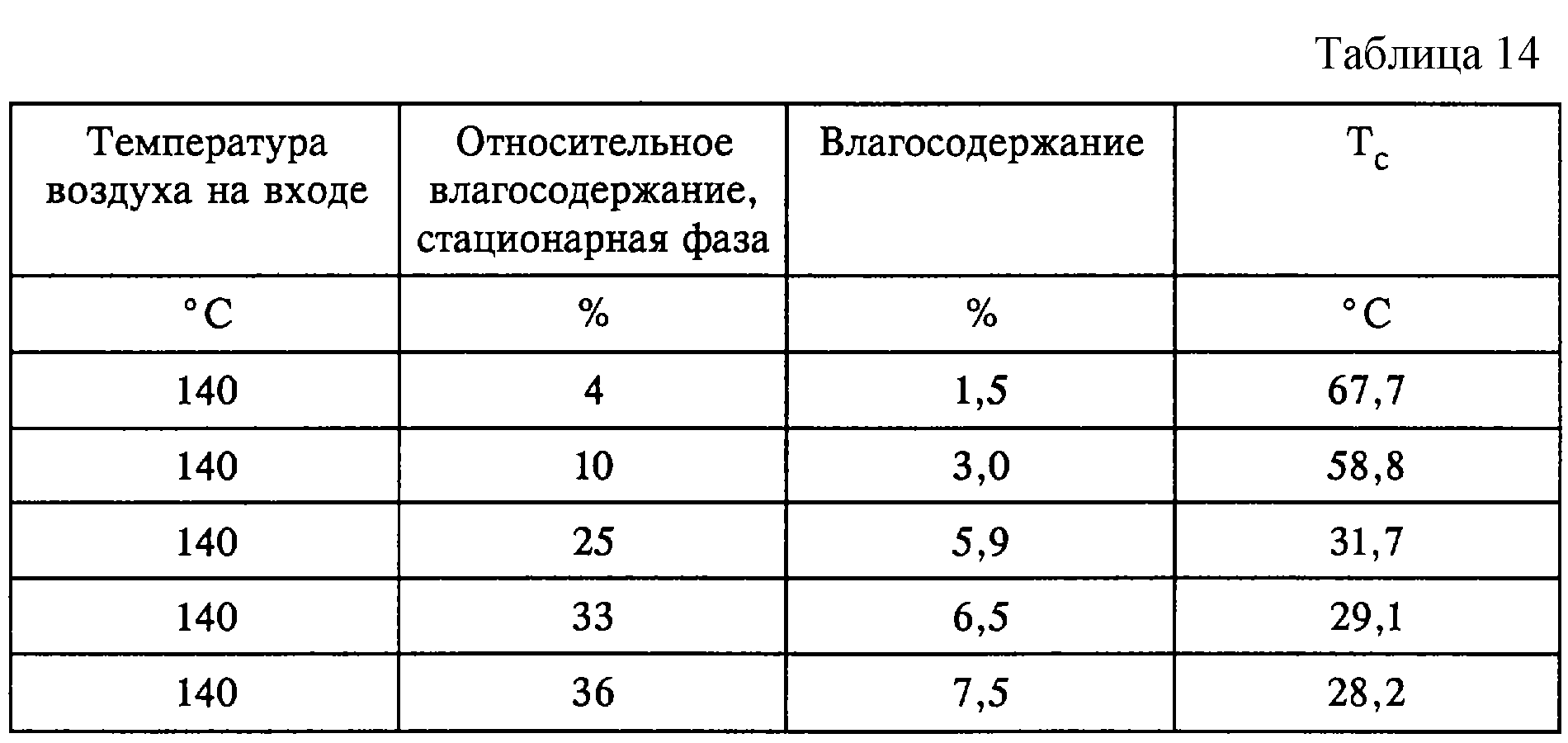 На примере смеси 1 это показывает, насколько относительное влагосодержание стационарной фазы при прочих неизменных условиях влияет на влагосодержание продукта и, следовательно, на Т. (См. табл. 14).