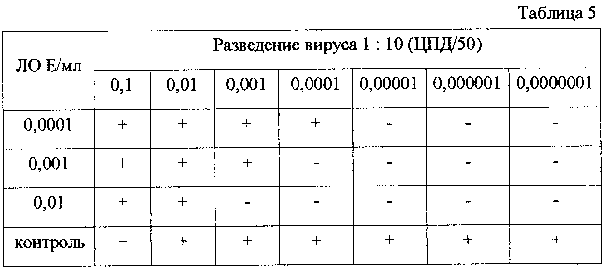 Как видно из полученных результатов, концентрация лизиноксидазы 0,01 Е/мл (0,3 мкг/мл) вызывает снижение цитопатического действия ВГП-1 на клетки, культивируемые in vitro примерно в 100000 раз.