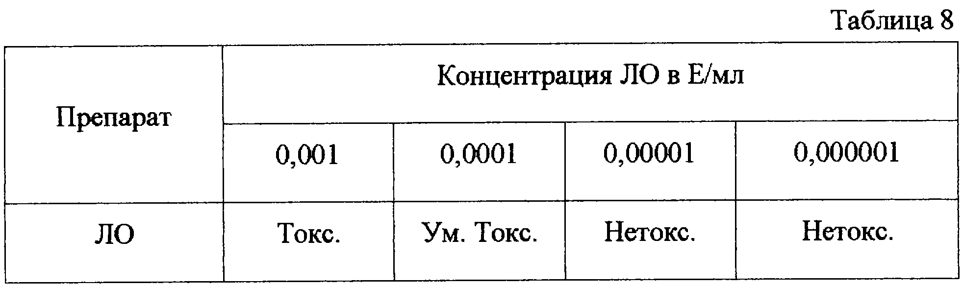 Препараты ЛО готовили следующим образом: исходный фермент в количестве 100 мкл (уд. Акт. 142 Е/мг) разводили средой RPMI-1640 в соотношении 1:50 (до 5 мл), далее из этого раствора стерильным наконечником отбирали 4,5 мкл и добавляли к 18 мл суспензии клеток. Разливали по 1,8 мл в каждую лунку и доводили объем средой или вируссодержащей жидкостью до 2 мл. Это составило конечную концентрацию ЛО 1:1000 Е/мл культуральной среды. В контроль вместо вируса добавляли 0,2 мл среды на лунку. Дальнейшее уменьшение концентрации фермента 1:10000-1:1000000 достигали стандартными 10-кратными разведениями.