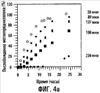 Фиг.4а и 4b. Влияние толщины пленки на профили высвобождения МР и SBE7 -CD из таблетки с пленочным покрытием.