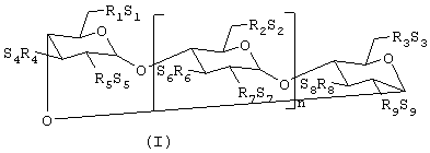Указанные производные циклодекстрина являются или замещенными по меньшей мере по одной из первичных гидроксильных групп (т.е. по меньшей мере один из R1 – R3 является заместителем), или они замещены как по первичной гидроксильной группе, так и по гидроксильной группе в положении 3 (т.е. как по меньшей мере один из R1 – R3, так и по меньшей мере один из R4, R6 и R8 является заместителем). Замещение по гидроксильной группе в положении 2 хотя и возможно теоретически, но, как показали исследования авторов изобретения, в продуктах изобретения по существу не появляется.