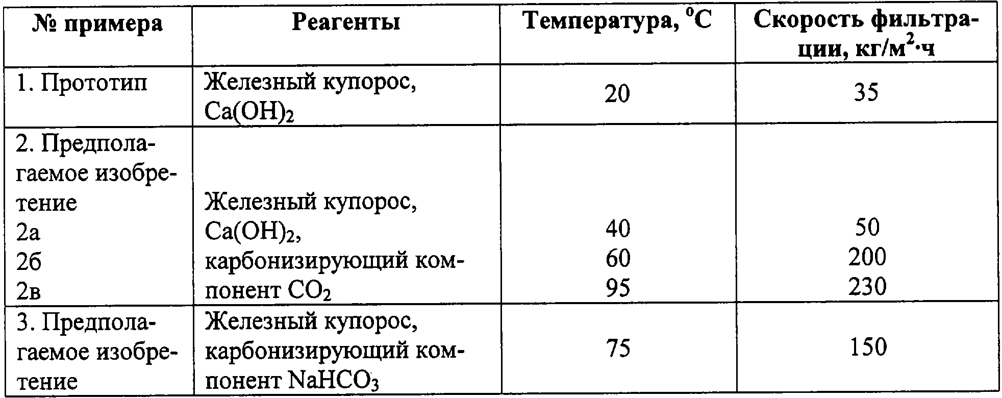 В отличие от прототипа совместное использование карбонизации и нагревания по предполагаемому изобретению позволяет получить хорошо фильтрующиеся суспензии, скорость фильтрации которых в 4,3-6,5 раз выше, чем в известном способе, что подтверждается примерами (см. таблицу).