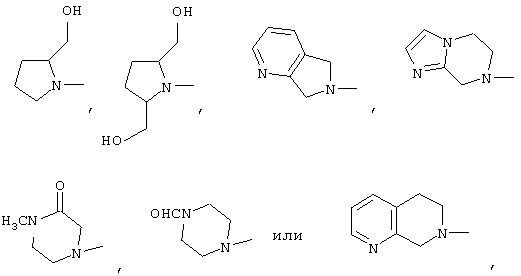 или азотсодержащую гетеробициклическую группу следующей формулы, где указанная выше 5- или 6-членная неароматическая азотсодержащая гетеромоноциклическая группа и 5- или 6-членная ароматическая азотсодержащая гетеромоноциклическая группа являются конденсированными: