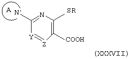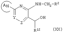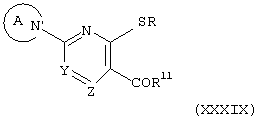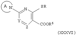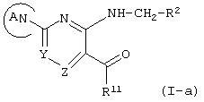 Заместитель “замещенной или незамещенной азотсодержащей гетероциклической группы” для кольца А и R представляет собой, например, (1) низшую алкильную группу, (2) гидроксизамещенную низшую алкильную группу, (3) формильную группу, (4) оксогруппу, (5) аминогруппу, (6) ди-(низший алкил)аминогруппу, (7) гидроксигруппу, (8) низшую алкоксигруппу, (9) низшую алкоксикарбонильную группу, (10) низшую алкоксизамещенную низшую алканоильную группу, (11) низшую алканоильную группу, (12) цианозамещенную низшую алкильную группу и (13) пиримидинильную группу, замещенные (i) бензиламиногруппой, замещенной атомом галогена и низшей алкоксигруппой, и (ii) циклоалкилкарбамоильной группой, замещенной гидроксигруппой и т.д.