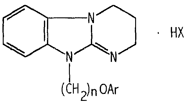 Формула изобретения Соли 10- -арилоксиалкил-2,3,4,10-тетрагидропиримидо[1,2-а]бензимидазола общей формулы