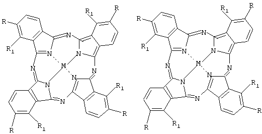 Соединения I-IV являются монофункциональнозамещенными металлфталоцианинами, а соединения V-VII-бифункциональнозамещенными.