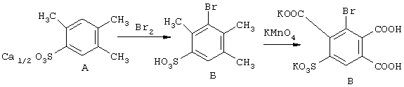 – дикалиевая соль 3-бром-4-карбокси-5-сульфофталевая кислота. Этот реагент промышленностью в настоящее время не выпускается, поэтому был нами синтезирован по следующей схеме: