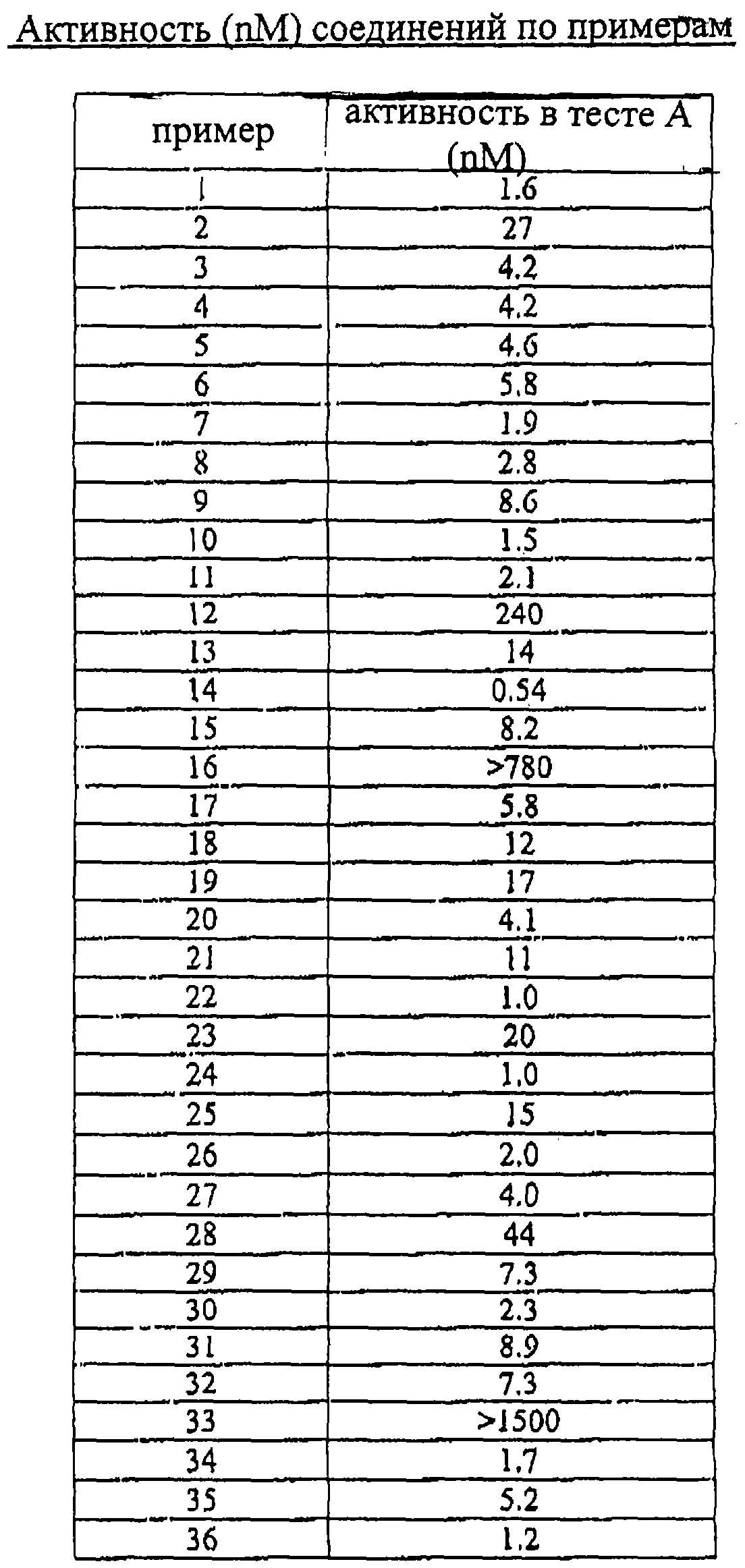 1,5. Образцы анализировали в трех повторностях, они различались в типичном случае на ±5%. Величины Ki определяли с использованием 6 или более концентраций лекарственного средства. Соединения изобретения являются соединениями с аффинностями связывания (Ki) менее чем 1000 нМ либо в испытании А, либо в испытании В, что указывает на то, что они, как и ожидалось, обладают полезной терапевтической активностью.