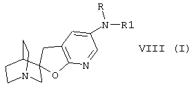 R-(-)-5′-N-(2-гидроксиэтил)-N-(3-тиенилметил)аминоспиро[1-азабицикло[2.2.2]октан-3,2′-(3’Н)-фуро[2,3-b]пиридин], и их энантиомеры, и их фармацевтически приемлемые соли.