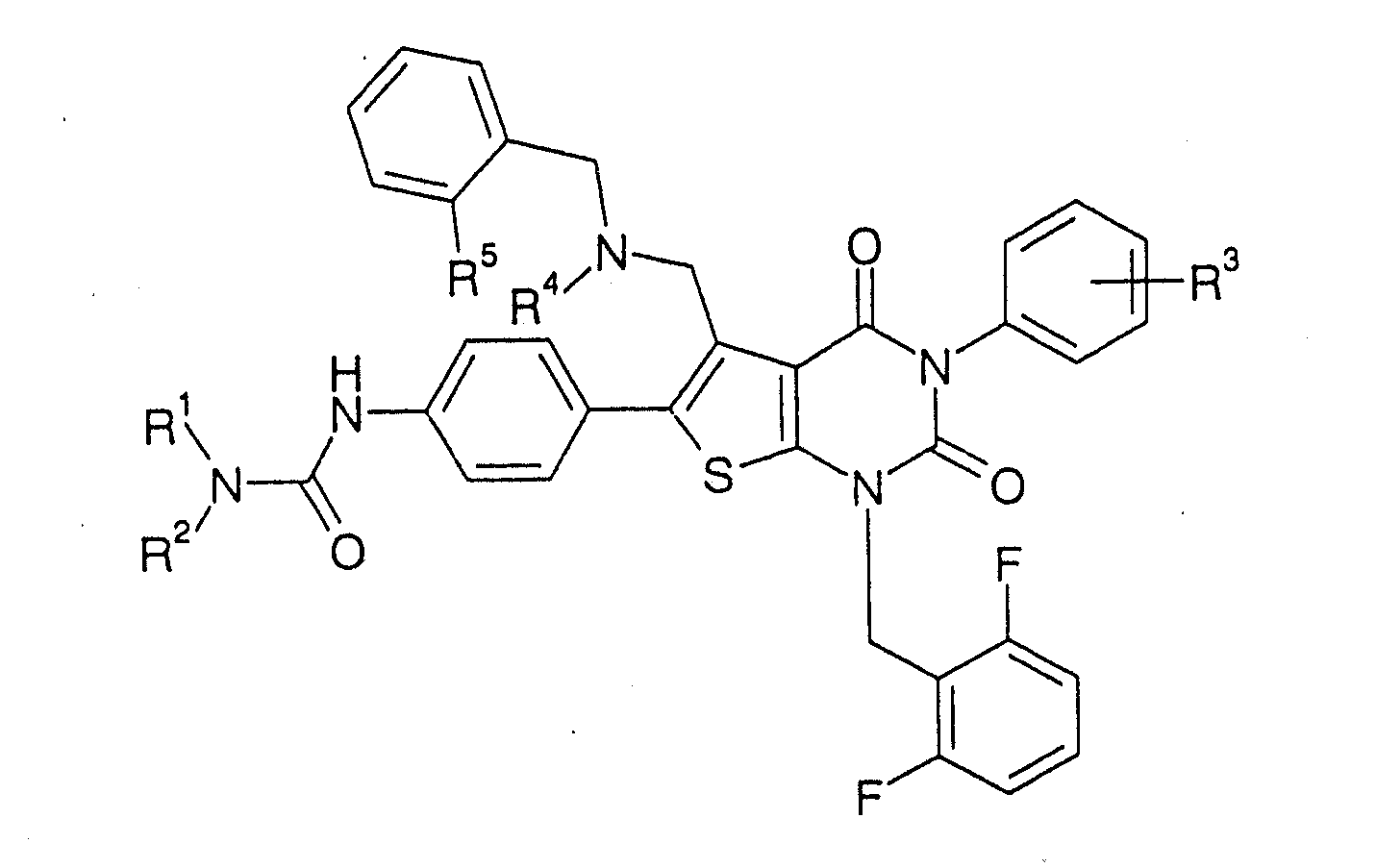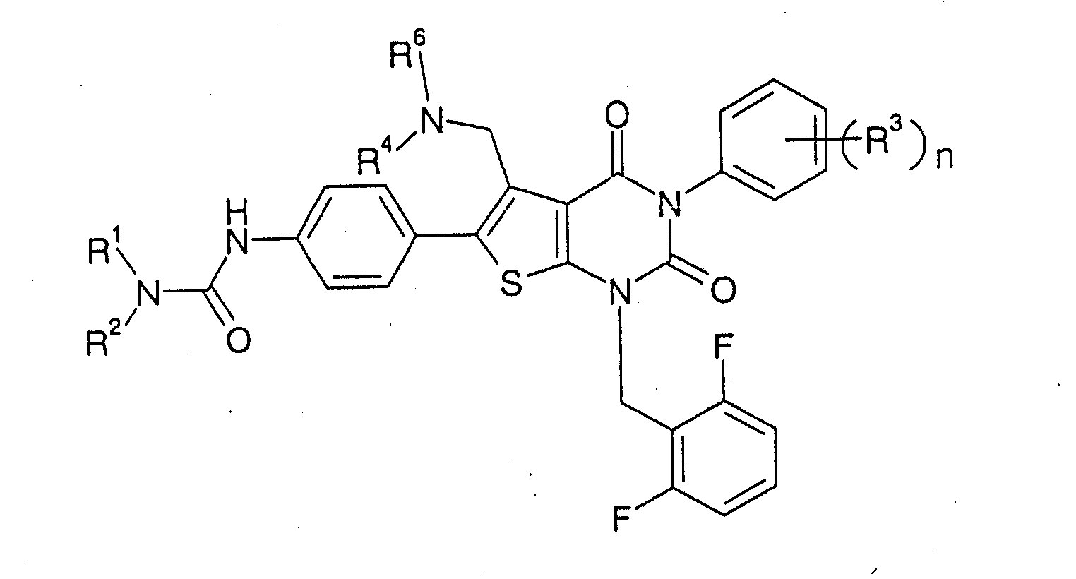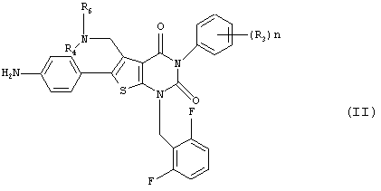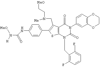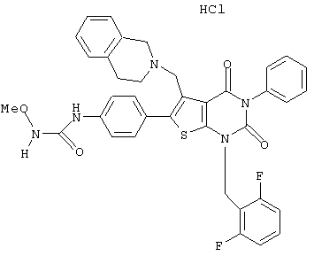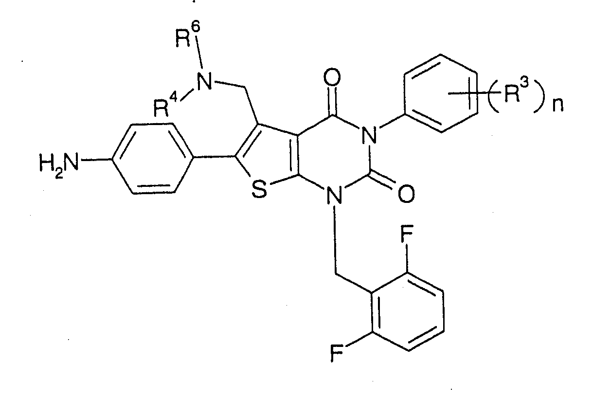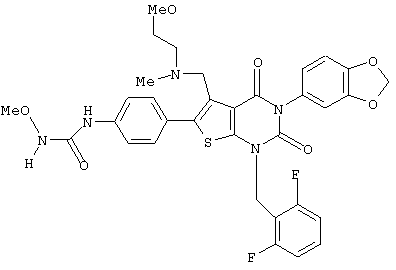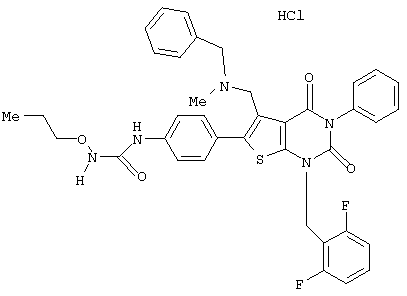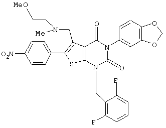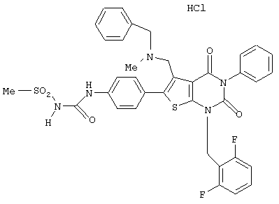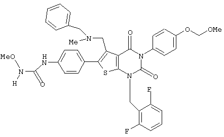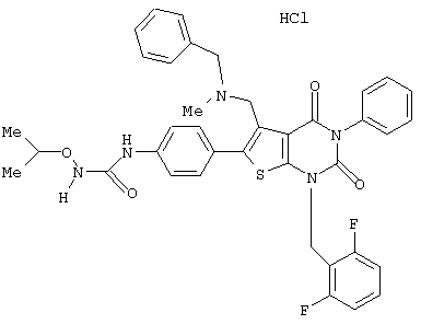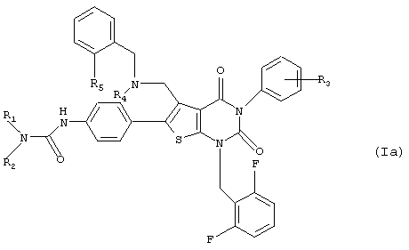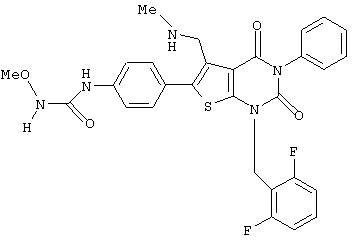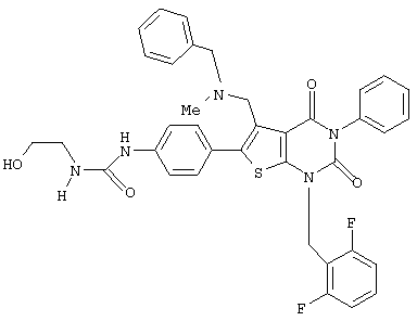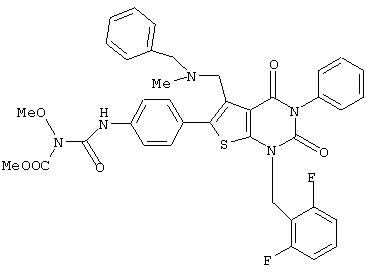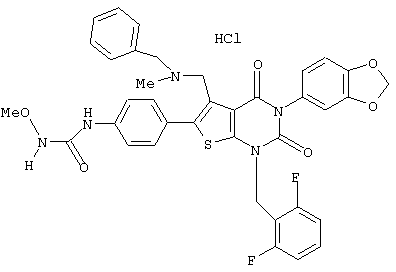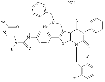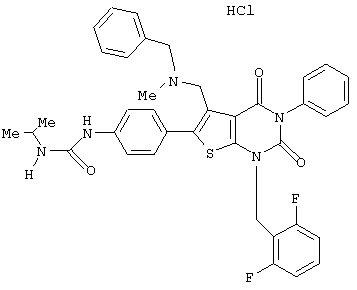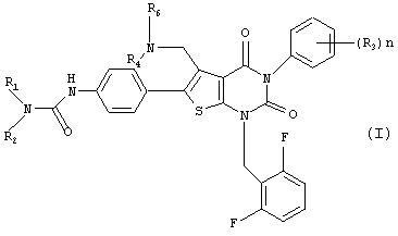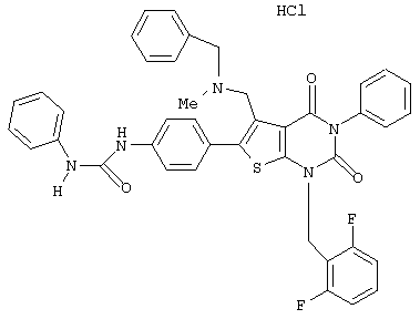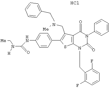 5-(N-бензил-N-метиламинометил)-1-(2,6-дифторбензил)-6-[4-(3-этилуреидо)фенил]-3-фенилтиено[2,3-d]пиримидин-2,4(1H,3Н) -дион или его соль и так далее.