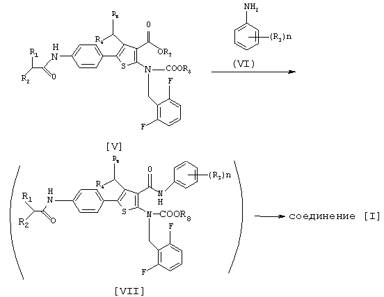 1) В том случае, когда R7 представляет атом водорода, соединение (I) может быть получено взаимодействием соединения (V) с соединением формулы: