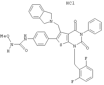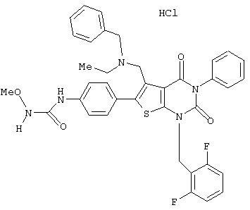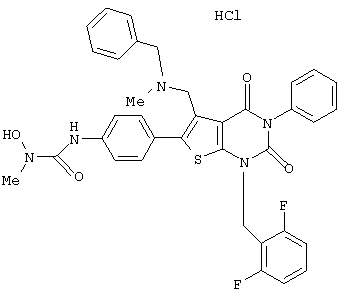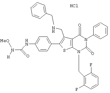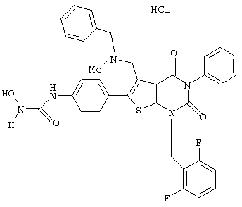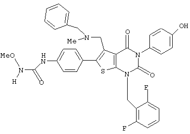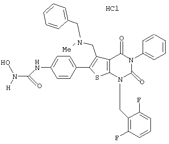 5-(N-бензил-N-метиламинометил)-1-(2,6-дифторбензил)-6-[4-(3-гидроксиуреидо)фенил]-3-фенилтиено[2,3-d]пиримидин-2, 4(1Н,3Н)-дион или его соль;