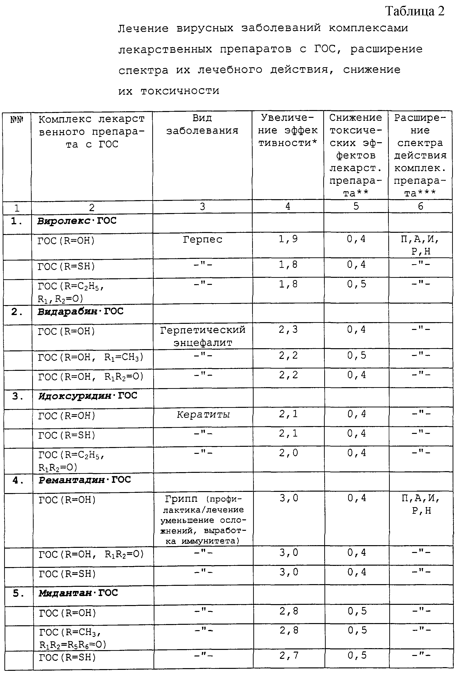 ГОС образуют комплексы со всеми известными противовирусными препаратами, относящимися к производным адамантана (Мидантан, Ремантадин), к аналогам нуклеозидов (Зидовудин [Ретровир], Виролекс, Ганцикловир, Видарабин, Идоксуридин, Метисазон, Оксолин, Рибамидил) и другими.