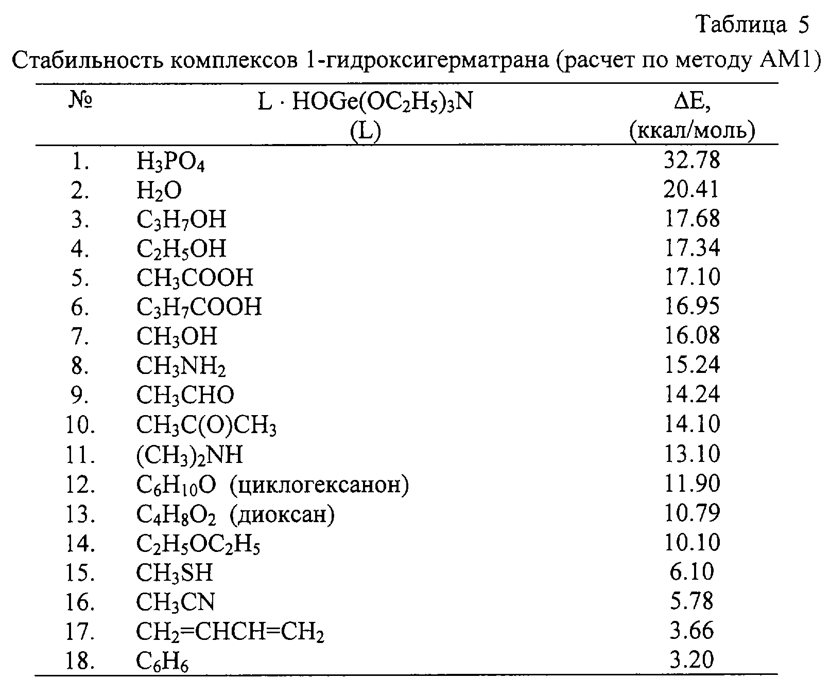Структура и строение комплекса 1-гидроксигерматрана. В табл.5 дана стабильность комплексов 1-гидроксигерматрана