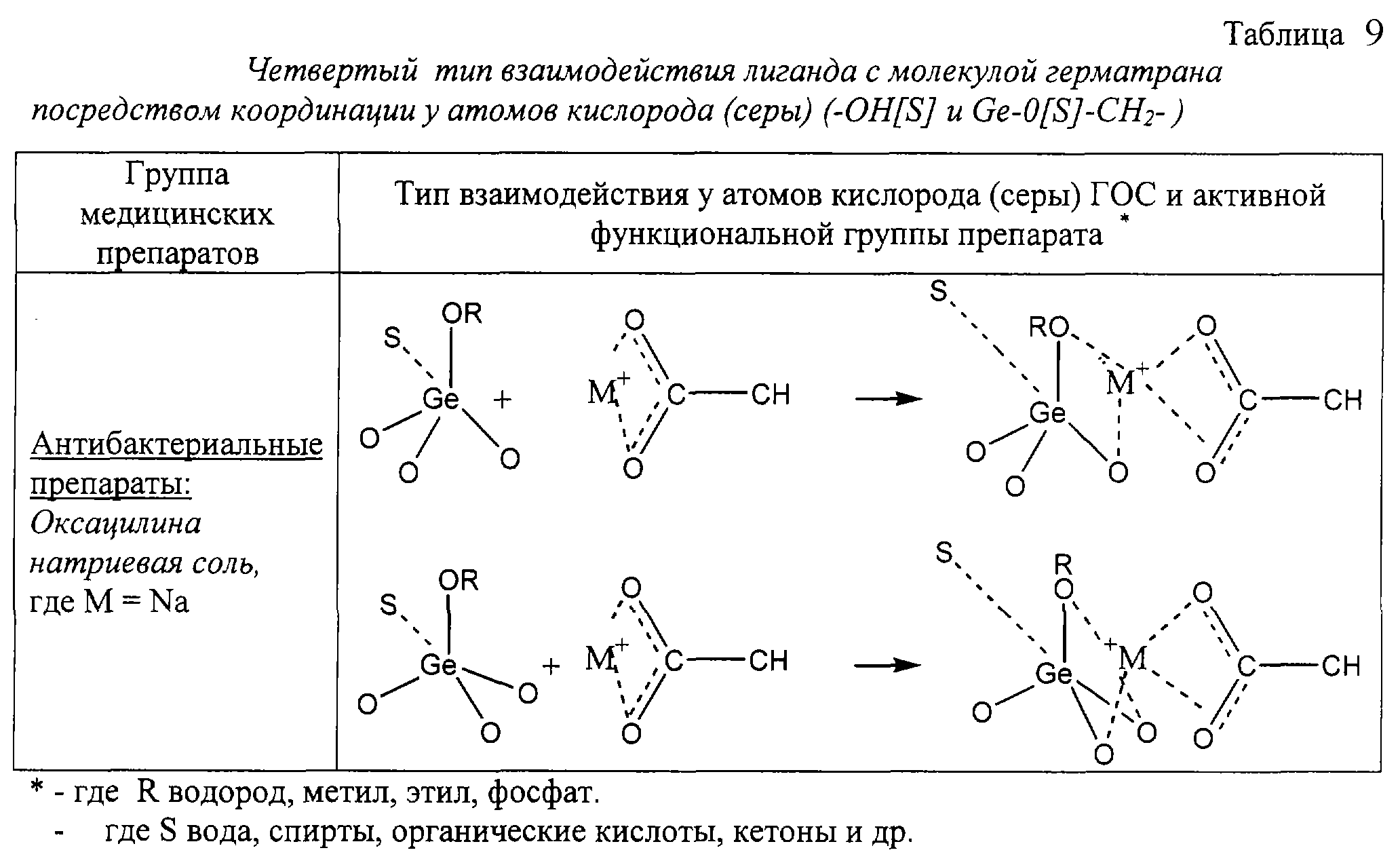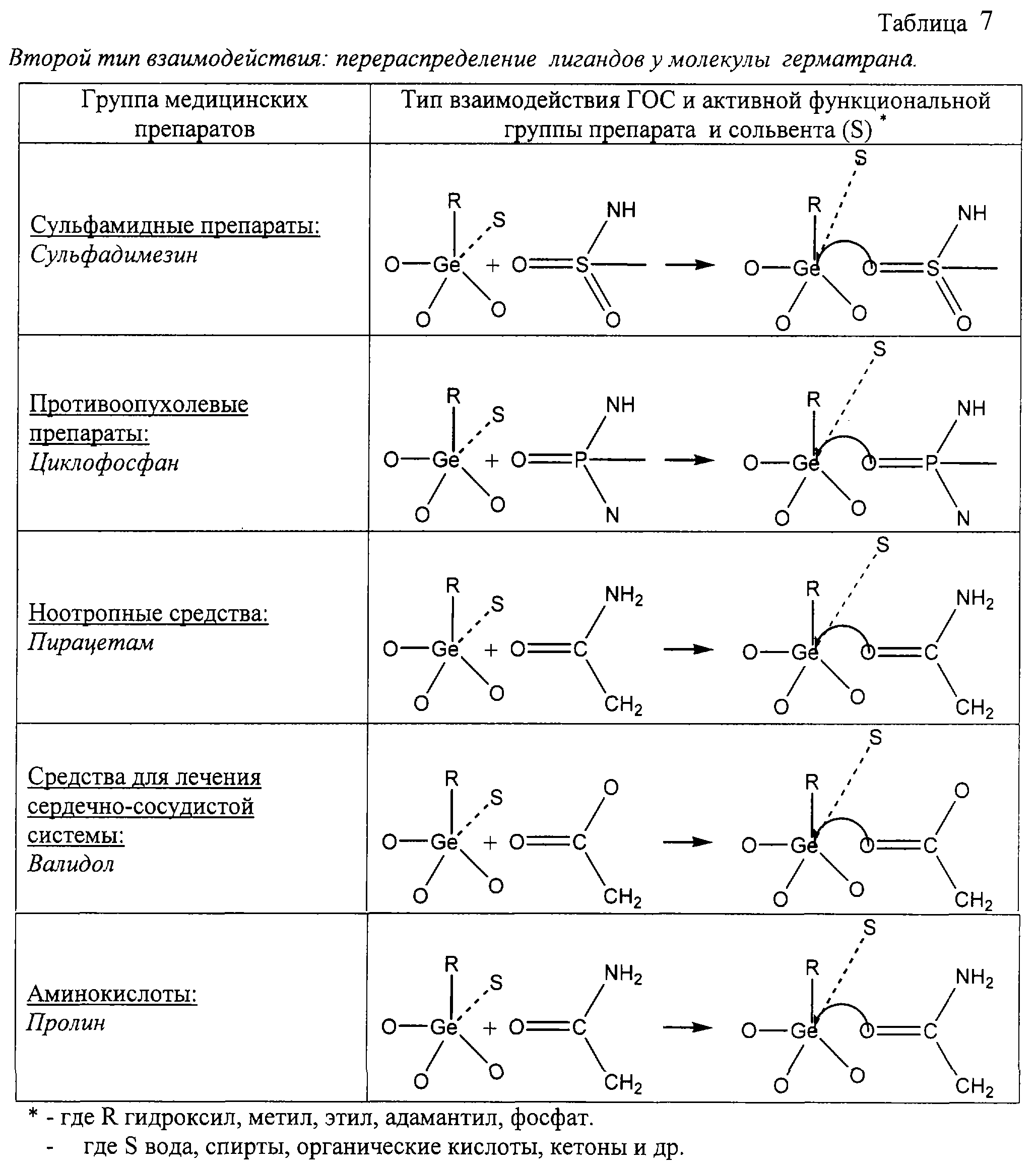 1. За счет образования водородных связей между гидроксильной (тиогидроксильной) группой ГОС и гидрокси-, карбокси-, оксо-, амино-, сульфо-, меркапто- и другими группами, а также их тиоаналогами и анионами органических и неорганических солей и другими группами лекарственных средств и биологически активных веществ.