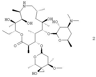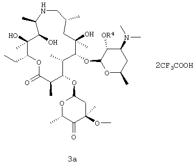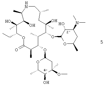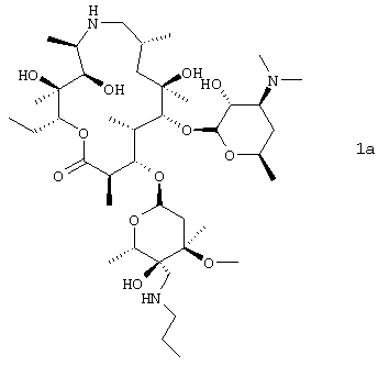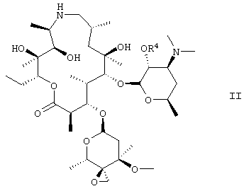 При лечении широкого спектра бактериальных инфекций и инфекций, вызванных простейшими, у млекопитающих, рыб и птиц известно использование антибиотиков макролидного ряда. Такие антибиотики включают в себя различные производные эритромицина А, такие как азитромицин, который является коммерчески доступным и описан в патентах США 4474768 и 4517359, оба приведены здесь в качестве ссылки в своем полном объеме. Как азитромицин, так и другие антибиотики макролидкого ряда, макролидные соединения по настоящему изобретению обладают сильным действием против различных бактериальных инфекций и инфекций, вызванных простейшими, как описано далее.