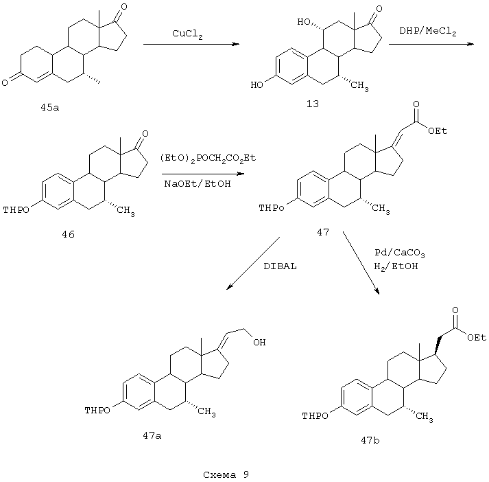 14. Способ синтеза 7 -метилэстрона, полезного в синтезе соединений 17-дезокси-1,3,5(10)эстратриена, включающий контактирование кислого раствора 7 -метиландрост-4-ен-3,17-диона с CuCl2.