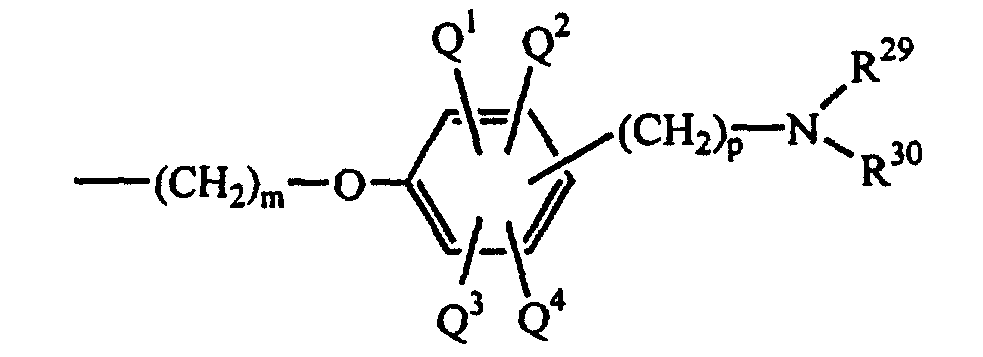 где Q обозначает NR36, О или СН2, Q’ обозначает оксо или СН2 и i равно 0 или 1. Y необязательно замещен при одном или нескольких доступных атомах углерода галогеном, оксо, гидроксилом, низшим алкилом, низшим алкокси или низшим галогеналкилом, при условии, что, когда Х обозначает 0-Y и R обозначает С, тогда Y является иным, чем водород, и, когда J обозначает СН, тогда R29 и R30 вместе образуют J’.