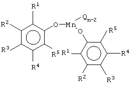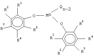 в которых R1 обозначает водородный атом или С4-С100группу, предпочтительно третичную алкильную группу, предпочтительнее алкильную C4-C20гpynny, предпочтительно третичную алкильную С4-С20группу, предпочтительнее нейтральную С4-С100группу, и может быть связанным или может быть также не связанным с М, и по меньшей мере один из радикалов с R2 по R5 обозначает группу, содержащую гетероатом, а каждый из остальных с R2 по R5 независимо обозначает водородный атом или C4-С100группу, предпочтительно алкильную С4-С20группу (предпочтительнее бутил, изобутил, пентил, гексил, гептил, изогексил, октил, изооктил, децил, нонил или додецил), и любой из радикалов с R2 по R5 также может быть связанным или может быть не связанным с М, О обозначает атом кислорода, М обозначает атом переходного металла с группы 3 по группу 10 или атом лантанидного металла, предпочтительно металла группы 4, предпочтительнее Ti, Zr или Hf, n обозначает состояние валентности металла М, предпочтительно 2, 3, 4 или 5, Q обозначает алкил, атом галогена, бензильную, амидную, карбоксилатную, карбаматную, тиолатную, гидридную или алкоксидную группу, или связь с группой R, включающей гетероатом, которой может быть любая из групп с R1 по R5. Гетероатомсодержащей группой может быть любой гетероатом или гетероатом, связанный с атомом углерода, кремния или другим гетероатомом. Предпочтительные гетероатомы включают атомы бора, алюминия, кремния, азота, фосфора, мышьяка, олова, свинца, сурьмы, кислорода, селена, теллура. Особенно предпочтительные гетероатомы включают атомы азота, кислорода, фосфора и серы. Еще более предпочтительные гетероатомы включают атомы кислорода и азота. Сам гетероатом может быть непосредственно связан с феноксидным кольцом или он может быть связанным с другим атомом или атомами, которые связаны с феноксидным кольцом. Гетероатомсодержащая группа может включать один или несколько аналогичных или разных гетероатомов. Предпочтительные гетероатомсодержащие группы включают остатки иминов, аминов, оксидов, фосфинов, простых эфиров, кетенов, оксоазолинов, гетероциклов, оксазолинов, тиоэфиров и т.п. Особенно предпочтительные гетероатомсодержащие группы включают иминовые группы. Любые из двух смежных групп R могут образовывать кольцевую структуру, предпочтительно 5- или 6-членное кольцо. Подобным же образом эти группы R могут образовывать полициклические структуры. В одном варианте любые две или большее число групп R не образуют 5-членного кольца.
