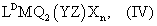 В формуле (IV) L и М имеют значения, указанные выше для формулы (I); Q имеет значения, указанные выше для формулы (I), предпочтительные значения Q выбирают из ряда, включающего -О-, -NR-, -СR2– и -S-; Y обозначает либо С, либо S; значения Z выбирают из ряда, включающего -OR, -NR2, -СR3, -SR, -SiR3, -PR2, -H, замещенные и незамещенные арильные группы при условии, что когда Q обозначает -NR-, значения Z выбирают из ряда, включающего -OR, -NR2, -SR, -SiR3, -PR2 и -Н; значения R выбирают из ряда, включающего атомы углерода, кремния, азота, кислорода и/или фосфора, причем предпочтительным значением R является углеводородная группа, содержащая от 1 до 20 углеродных атомов, наиболее предпочтительно алкильная, циклоалкильная или арильная группа; n обозначает целое число от 1 до 4, предпочтительно 1 или 2; Х обозначает одновалентную анионную группу, когда n обозначает 2, или Х обозначает двухвалентную анионную группу, когда n обозначает 1; предпочтительным значением Х является карбаматный, карбоксилатный или другой гетероаллильный остаток, отображаемый сочетанием Q, Y или Z.