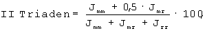 При определении соотнесенного с триадами индекса II (триады) изотактичности цепи для доли нерастворимого в н-гексане сополимера этиленпропилена во внимание принимаются только РРР-триады, т.е. только такие единицы пропилена, которые расположены между двумя соседними единицами пропилена (см. также заявку на европейский патент В-0115940, стр. 3, строки 48 и 49).